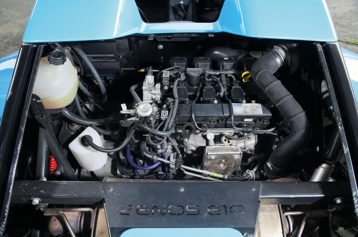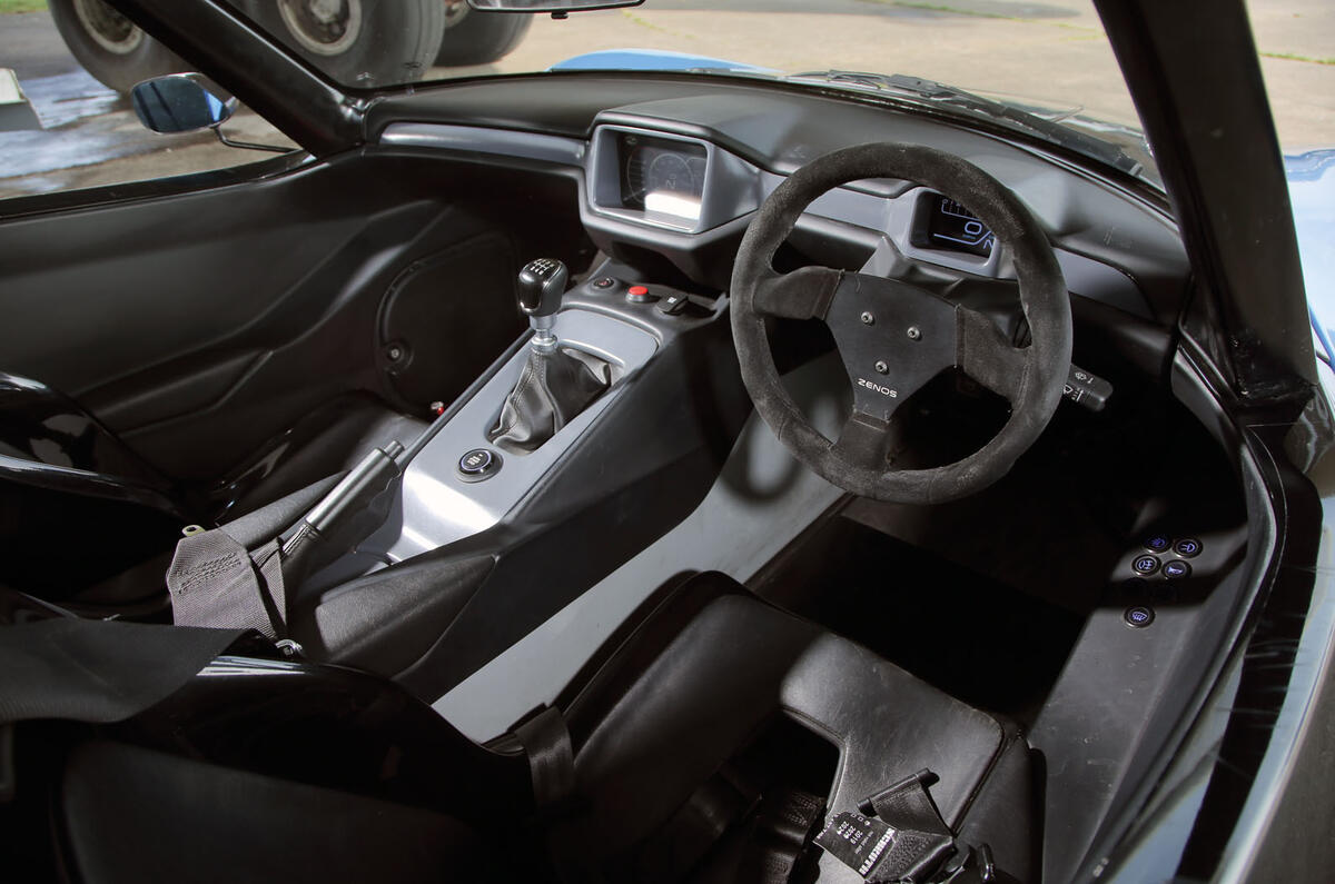 There’s aluminium in both, too, but less in the Zenos. Instead of an extruded and bonded aluminium monocoque, the E10 has an aluminium central spine – not unlike the early Lotus Elan. But to add stiffness, Zenos has specified a carbonfibre-reinforced plastic composite for the passenger tub. Sounds expensive.