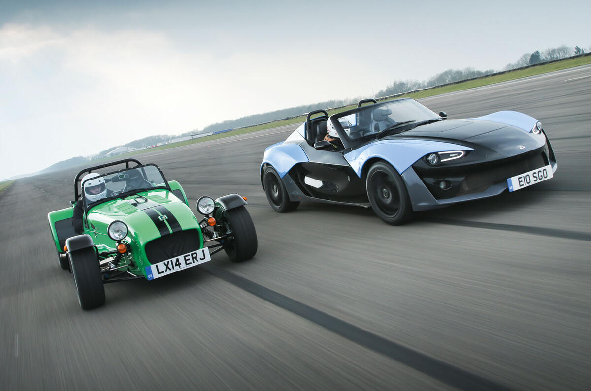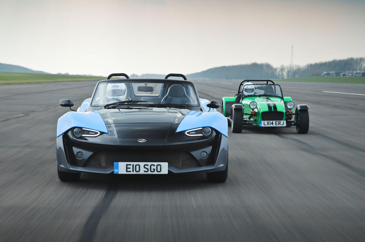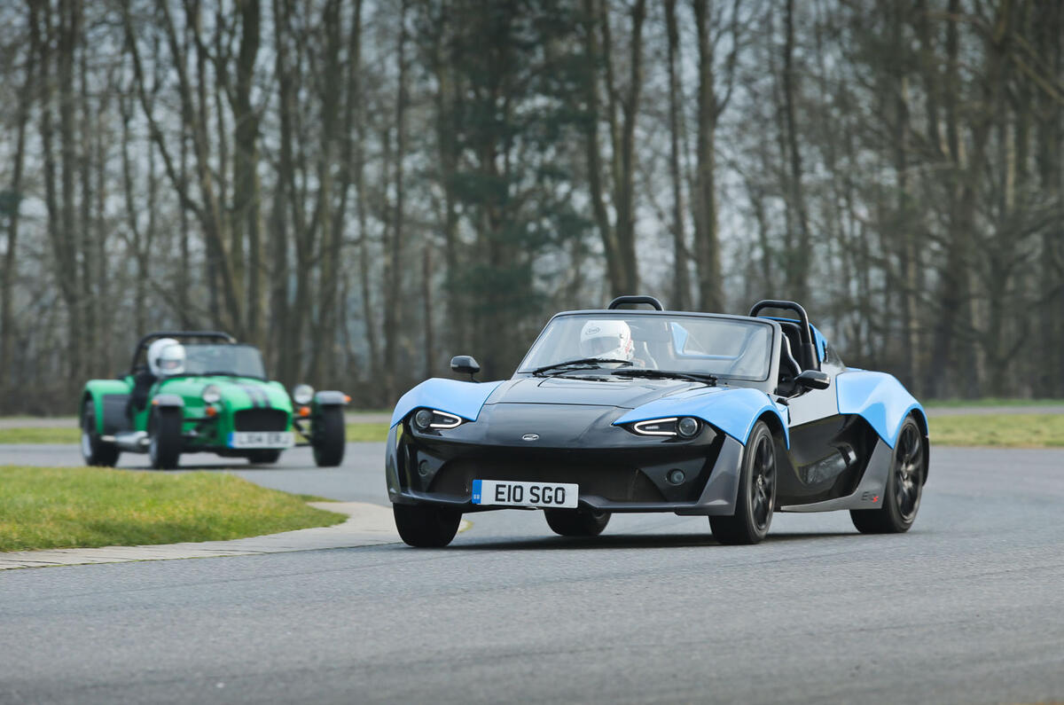 They were, respectively, CEO and COO of Caterham Cars, which makes the fact that a Caterham Seven 360R sits alongside the E10 a particularly interesting proposition. There are closer mechanical matches to the E10: a Lotus Elise has a more similar layout, but Lotus couldn’t arrange us a car and, besides, we’re happier for this story to have a little edge.